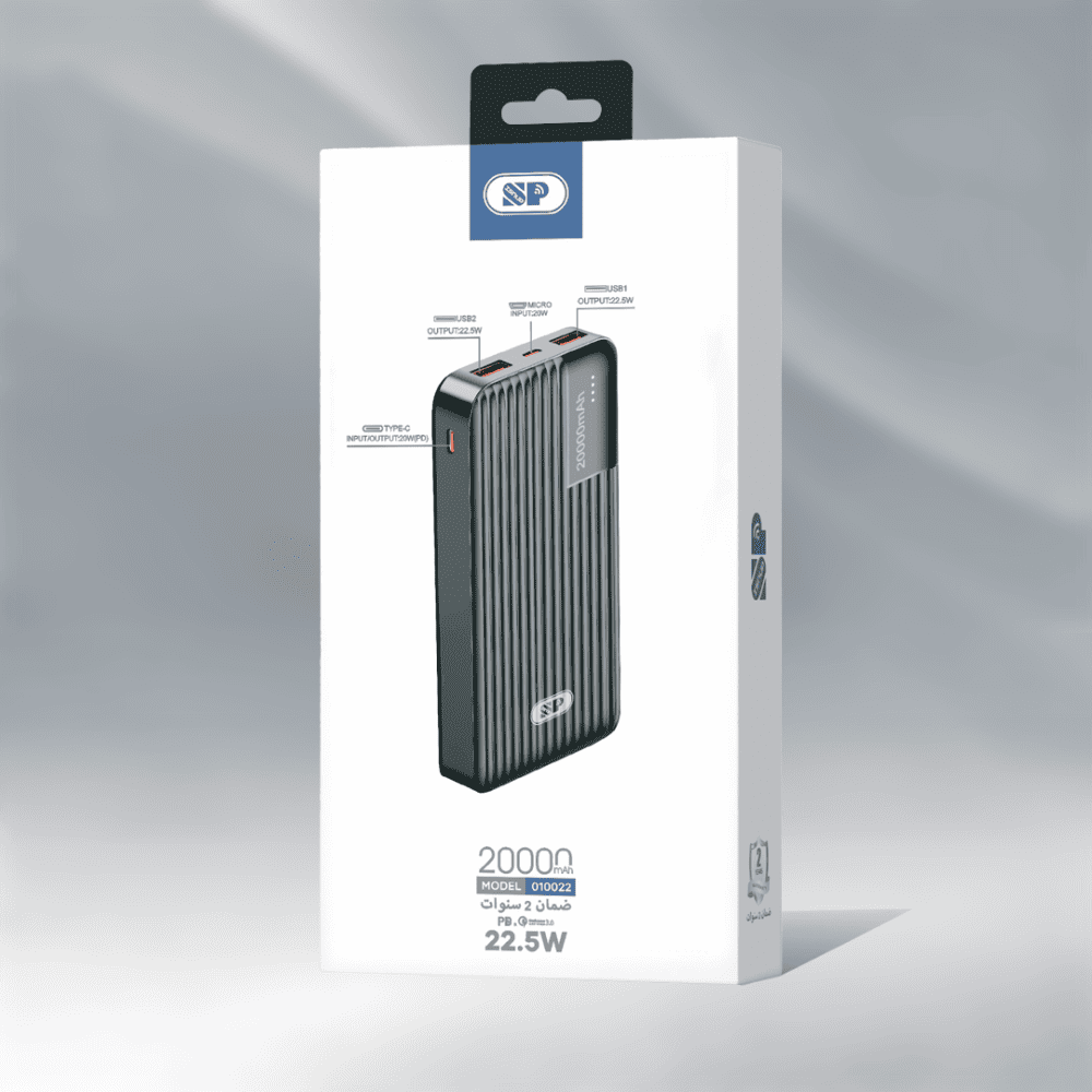 باور بنك 20000 22.5W(منفذ PD 18W+منفذين USB)