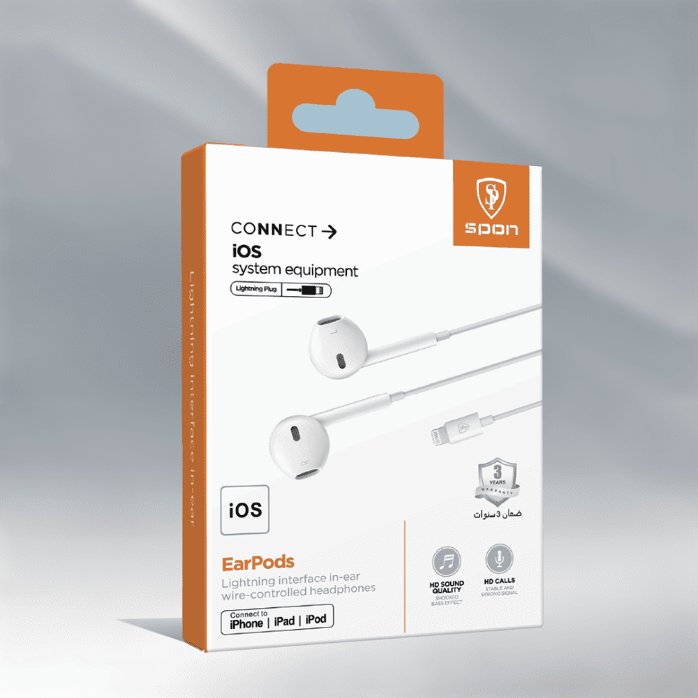 استمتع بتجربة صوتية أصلية وواضحة مع سماعة آيفون سلك من SPON. صممت لتلائم أجهزة iPhone 7 وما فوق بتقنية Lightning المتوافقة مع أنظمة iOS الحديثة. جودة صوت نقية تصميم مريح داخل الأذن وتحكم سهل بالمكالمات والصوت – كل ما تحتاجه في سماعة عملية وأنيقة.